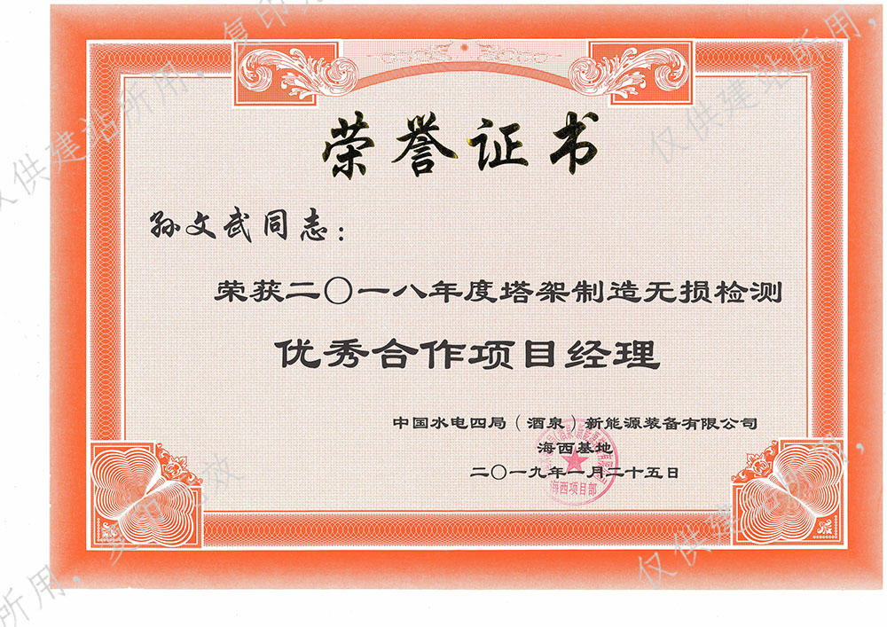 個人榮譽證書(中國水電四局(酒...