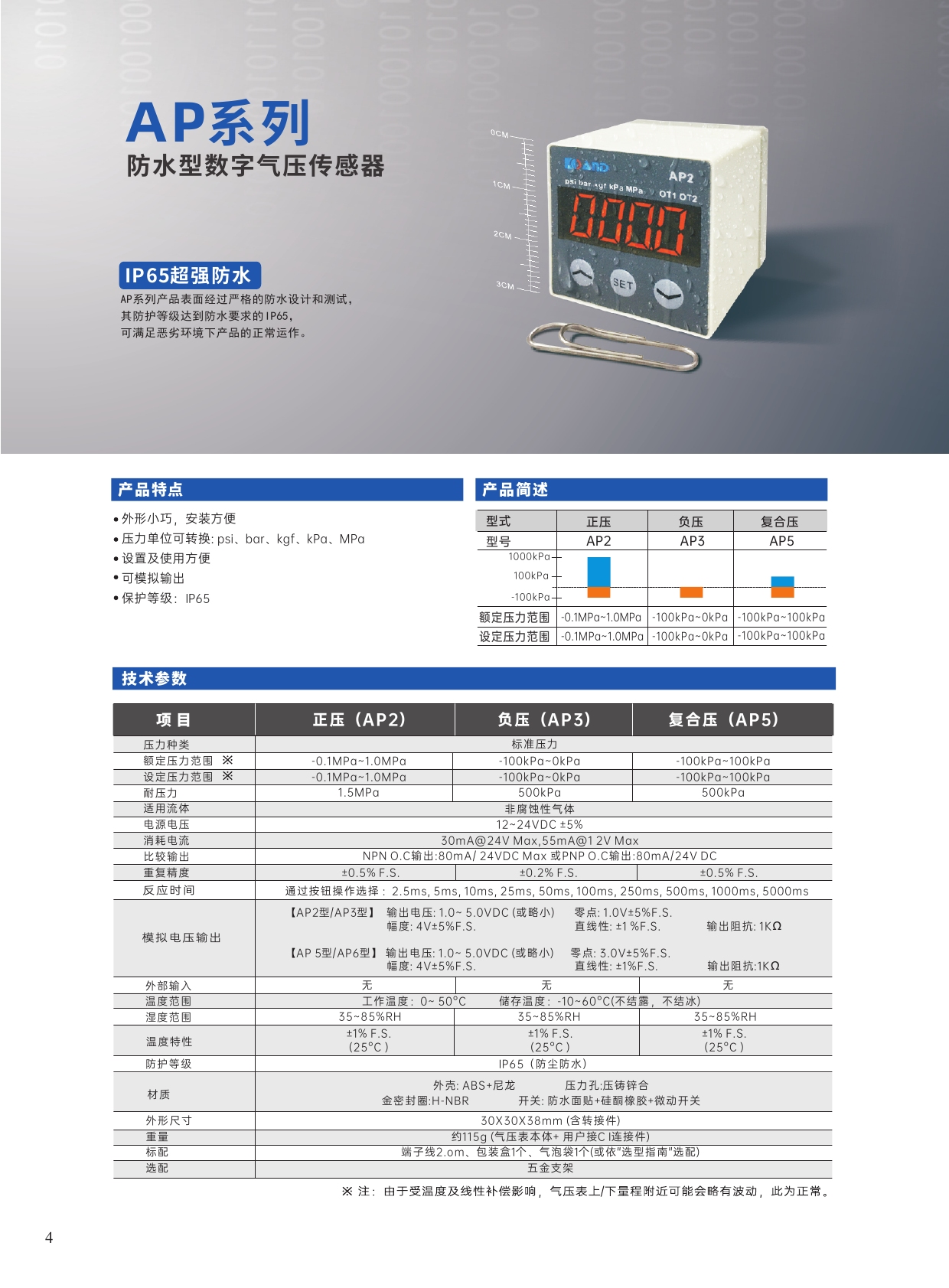所屬品牌:艾而特 所屬分類:氣壓表 應(yīng)用領(lǐng)域:紡織行業(yè) 電梯行業(yè) 機(jī)床行業(yè)等